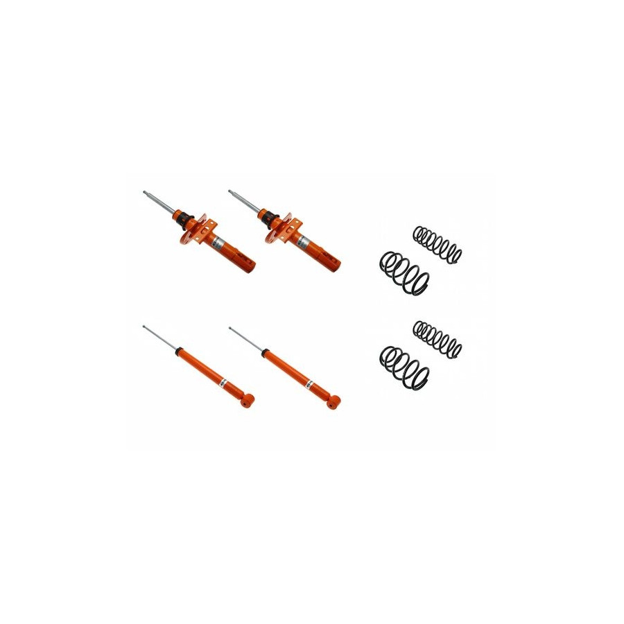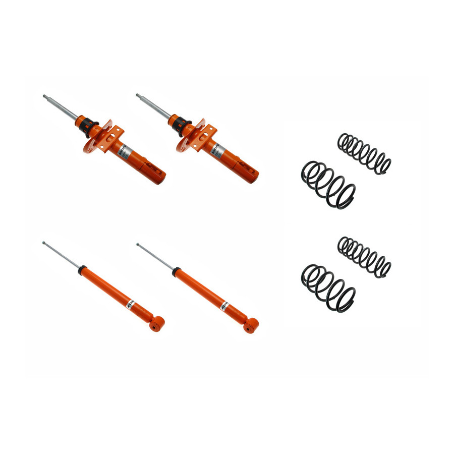 El kit KONI STR.T consta de amortiguadores KONI STR.T y muelles de bajada de altura hechos a medida por el fabricante alemán H&R. Ambas compañías cuentan con años de experiencia en las categorías más altas del automovilismo, como la Fórmula 1 y el DTM. Las ventajas para el cliente son evidentes. Esta experiencia, combinada con la tecnología más avanzada, se integra directamente en los amortiguadores y muelles. Los amortiguadores KONI STR.T ofrecen una dirección y un manejo perfectos, además de una fuerza centrífuga impresionante. Gracias a su rapidísima respuesta, el piloto puede confiar plenamente en su kit STR.T, incluso en situaciones peligrosas y exigentes. El resultado de esta colaboración entre H&R y los amortiguadores KONI STR.T es que el preparador del kit STR.T dispone de un kit perfectamente equilibrado para su coche. Esto minimiza los movimientos indeseados de la carrocería. Según el modelo, está disponible una bajada fija de hasta 40 mm.