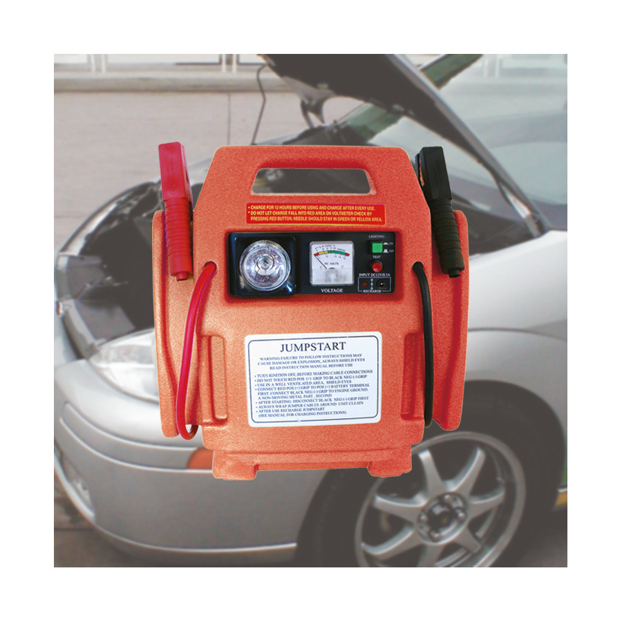 El arrancador Carpoint de 400 A/12 V tiene una corriente de 400 A y una corriente máxima de 900 A. Esto lo hace ideal para arrancar un coche, un ciclomotor, una motocicleta o una embarcación. Además, las prácticas instrucciones en la parte posterior le muestran cómo conectar las pinzas. ¿Necesita arrancar su coche en plena noche? Su luz brillante le garantiza una visión clara.