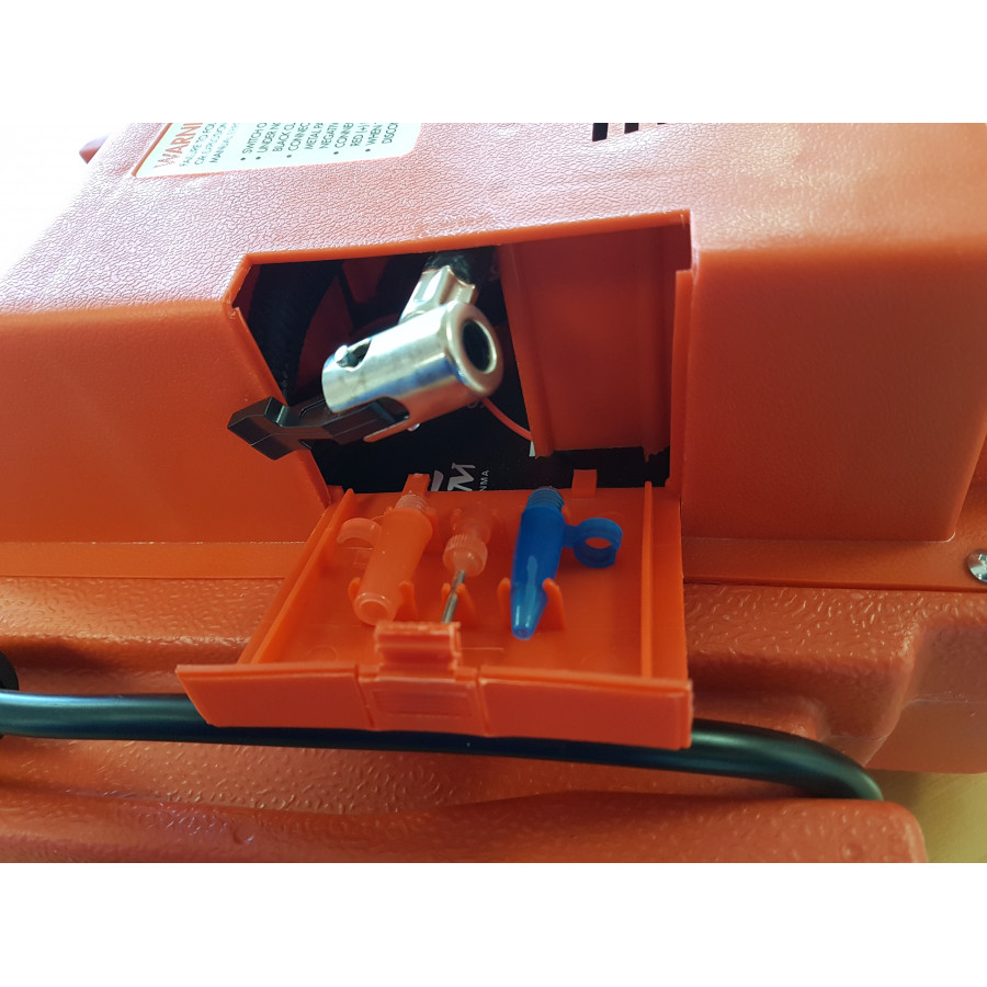 El compresor de aire integrado con una presión de 18 bares también es práctico para llevar (o simplemente en casa). Ahora puedes inflar colchones inflables, balones de fútbol, neumáticos de bicicleta o de coche sin esfuerzo y súper rápido, sin perder el aliento. Incluye prácticos adaptadores para que puedas inflar prácticamente cualquier cosa. Todas las mangueras y abrazaderas son fáciles de guardar. Esto mantiene todo compacto y hace que este arrancador sea fácil de transportar y guardar.