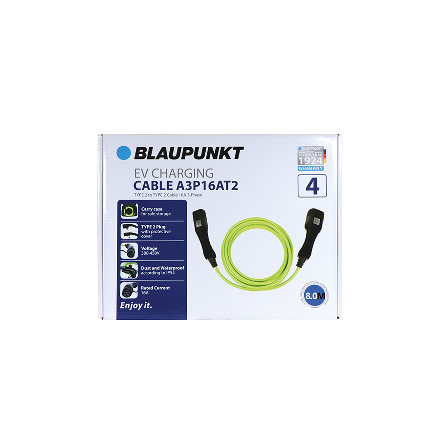 El cable de carga Blaupunkt es el complemento perfecto para tu coche eléctrico. Fabricado con materiales sintéticos, está especialmente diseñado para un máximo rendimiento y durabilidad. Disponible en 8 metros, este cable de carga Blaupunkt ofrece máxima flexibilidad. Además, su alta capacidad de carga te permite cargar tu coche de forma rápida y eficiente. Esto lo hace ideal tanto para casa como para llevar. El cable tiene una capacidad de carga de 16 A y carga de forma segura hasta 11 kW monofásica.