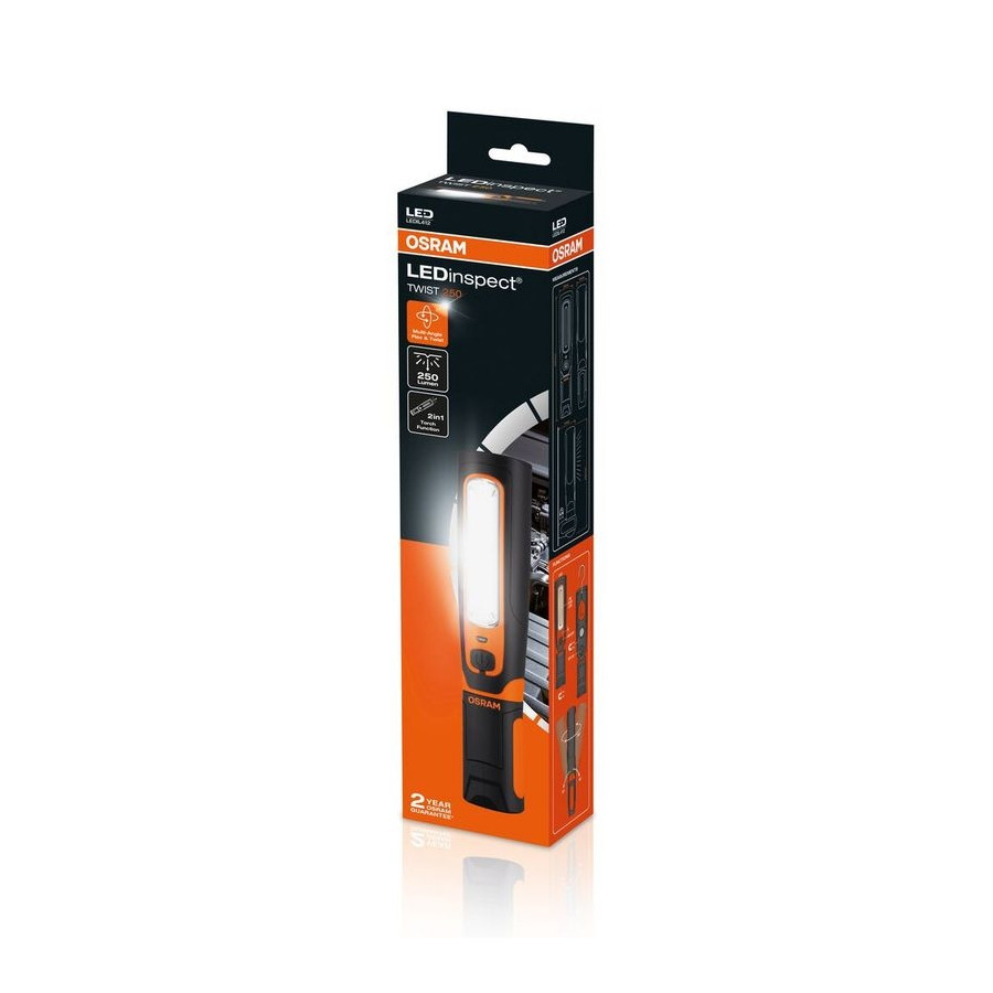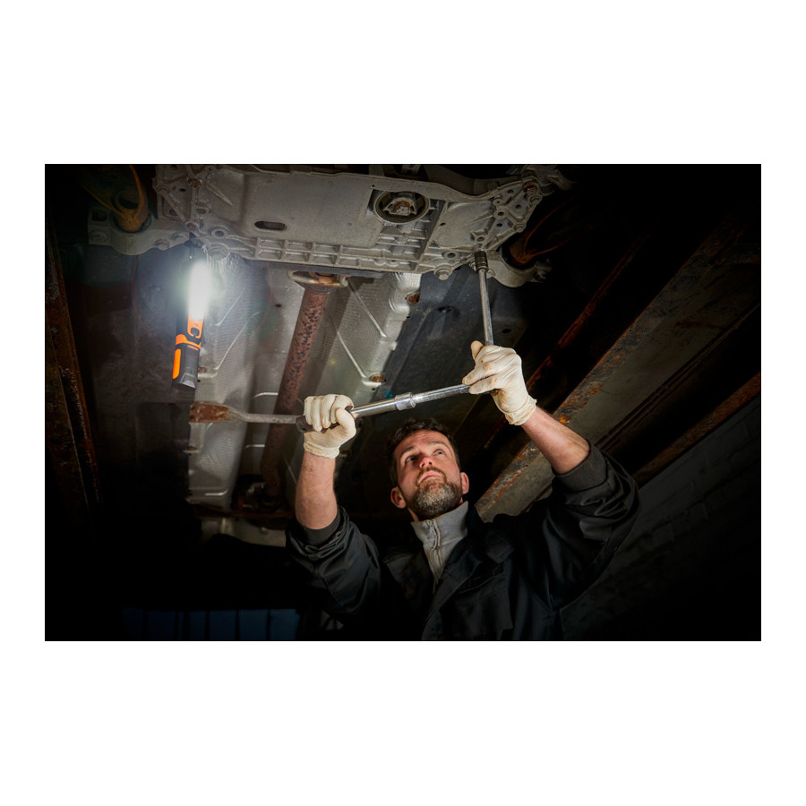 La TWIST 250 permite ajustar fácilmente la dirección del haz. Ofrece dos modos de iluminación: una luz de inspección de 125 o 250 lúmenes y una linterna de 80 lúmenes. Con un flujo luminoso de 250 lúmenes y una temperatura de color de hasta 6000 K, la TWIST 250 es ideal para su uso en talleres e incluso en exteriores.