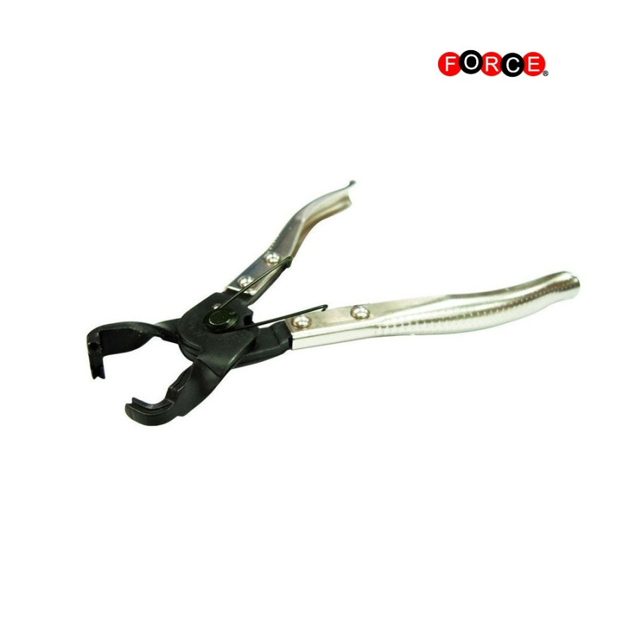 Alicates para abrazaderas de manguera con soportes de prisma rígidos para abrazaderas de banda elástica autotensables con extremos de abrazadera planos ("tipo W") como los que se utilizan en los vehículos VAG.