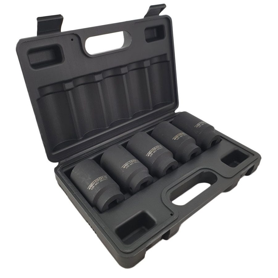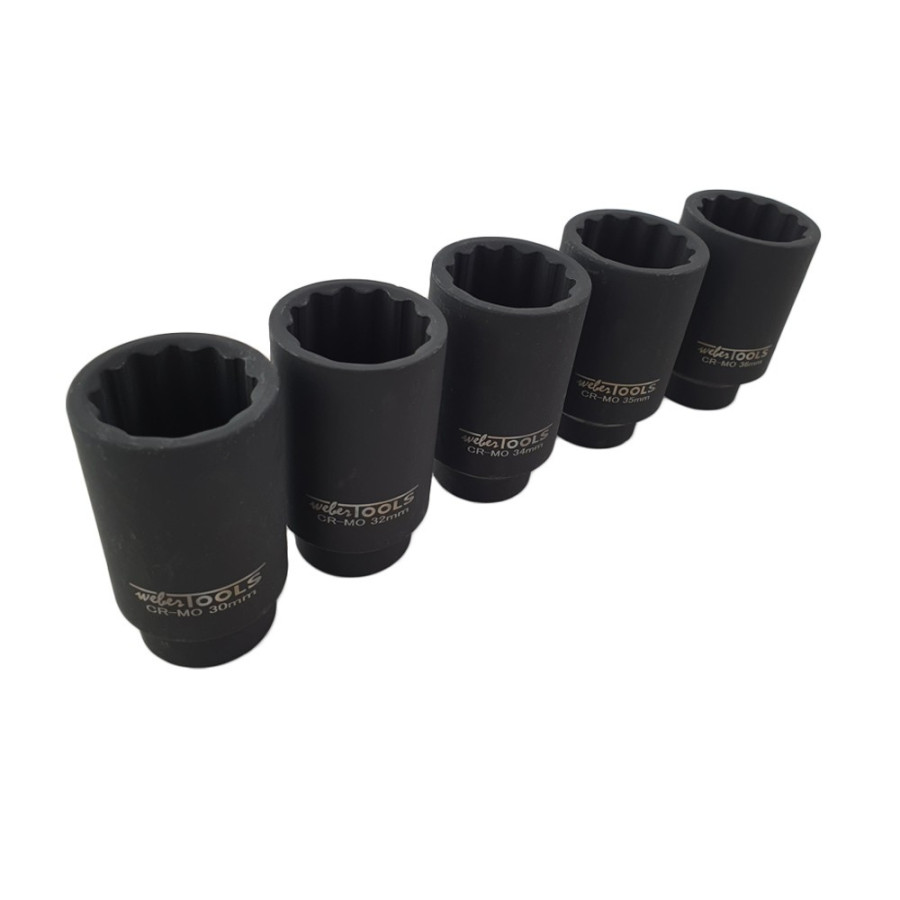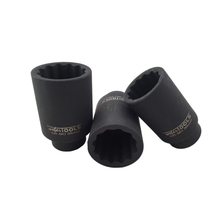 Juego de llaves de vaso para extraer las tuercas de 12 puntos del eje de transmisión y del cubo de la rueda. Fabricado en cromo molibdeno.