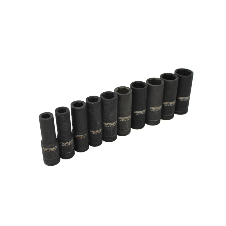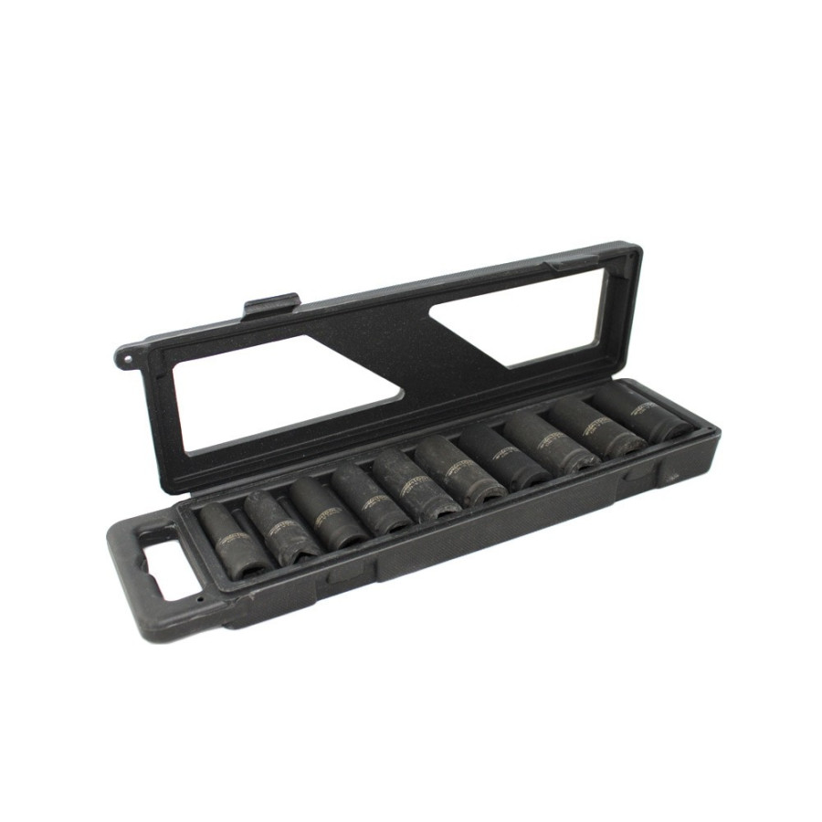 Juego de 10 vasos de impacto fabricados en cromo vanadio.