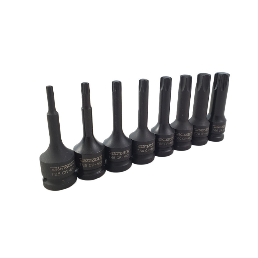 Juego de vasos de impacto Torx de 1/2'' fabricados en Cromo Molibdeno.