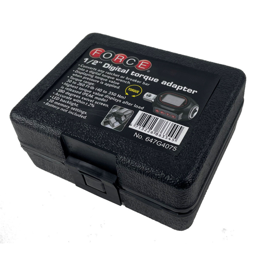 El adaptador de torque digital Force 647G4075 de 1/2" es una herramienta versátil que convierte cualquier trinquete o llave inglesa en una llave dinamométrica precisa. Ya sea que trabaje bajo el capó o apretando tuercas de rueda según las especificaciones de fábrica, este adaptador está listo para usar.