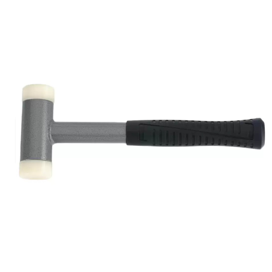 Martillo de nylon sin retroceso con mango de goma, útil para posicionar piezas sin causar daños.