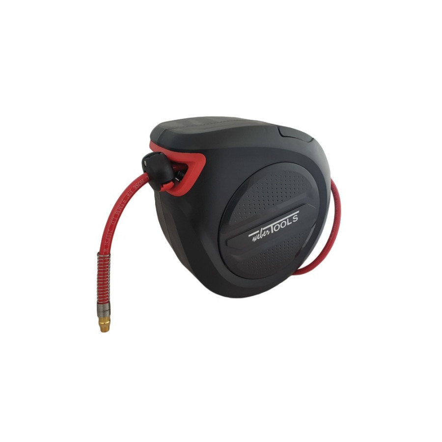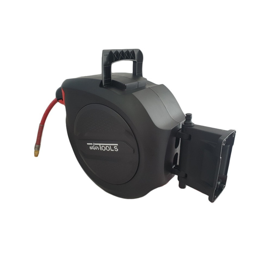 Enrollador de manguera de aire de 20 metros con sistema de enrollado automático provisto de tope de enrollado.
