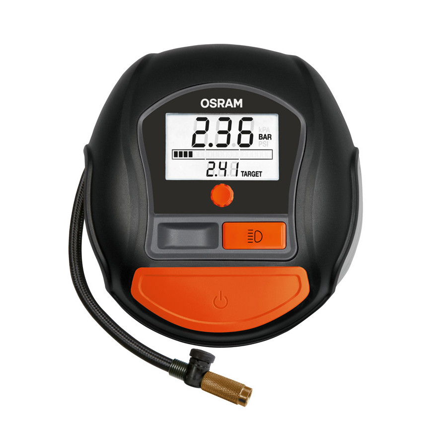El mantenimiento regular de la presión de los neumáticos le ayuda a mantener el control de su vehículo en la carretera. Además, una presión óptima previene el desgaste y, por lo tanto, puede prolongar el ciclo de reemplazo de neumáticos. Esto ahorra dinero y ayuda al medio ambiente, ya que una presión correcta también reduce el consumo de combustible y, por lo tanto, las emisiones de dióxido de carbono. Con las nuevas bombas y compresores de neumáticos OSRAM, ahora puede comprobar la presión de sus neumáticos usted mismo de forma rápida y sencilla y ajustarla si es necesario. Es fundamental que sus neumáticos estén inflados a la presión correcta para un agarre óptimo en carretera y, por lo tanto, una mayor seguridad.Características: