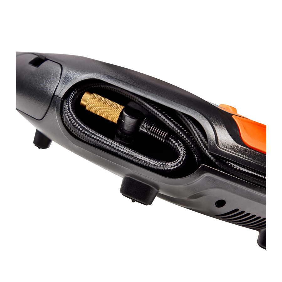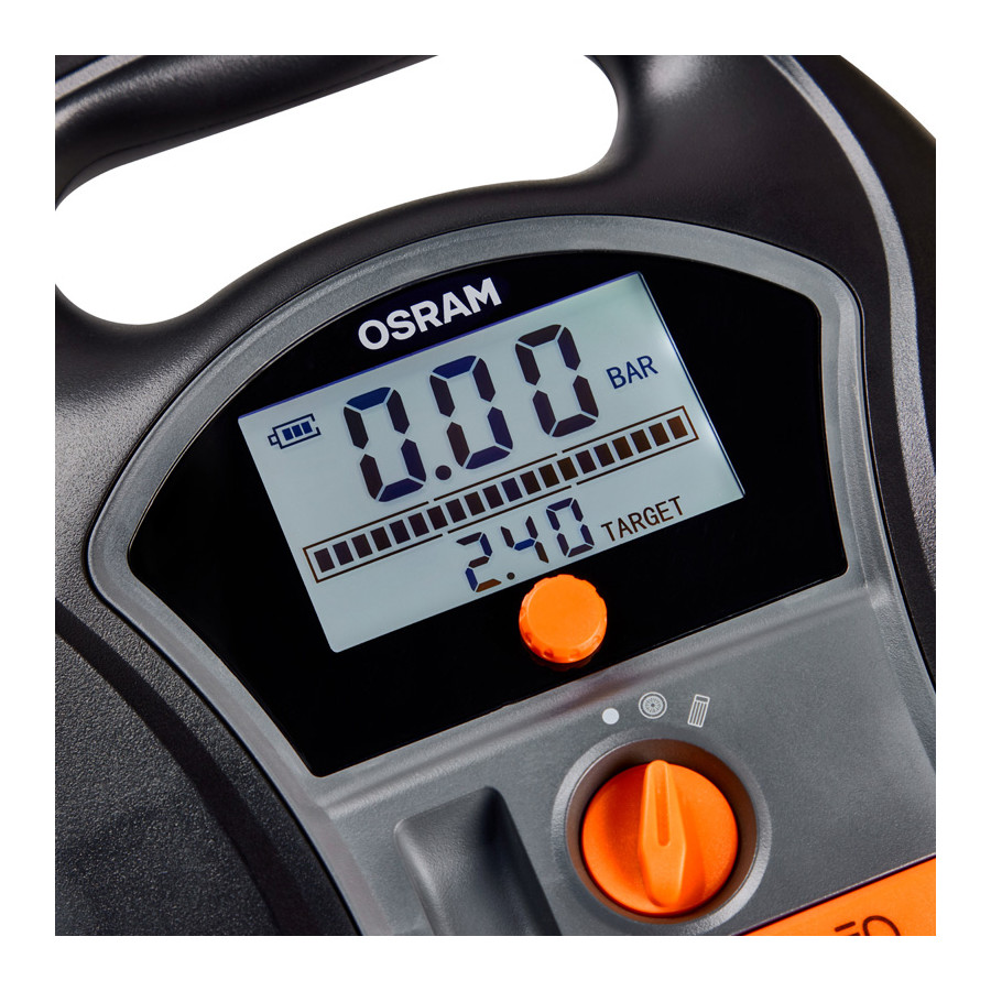 El inflador digital de neumáticos OTIR 6000 infla un neumático en tan solo dos minutos y cuenta con una configuración especial para otros inflables como colchones inflables, balones y más. La función de parada automática y la válvula de desinflado ayudan a mantener los neumáticos y otros inflables a la presión óptima. La pantalla LED retroiluminada y la luz LED integrada facilitan la lectura de los ajustes de presión e iluminan el área de trabajo, incluso con poca visibilidad o de noche.