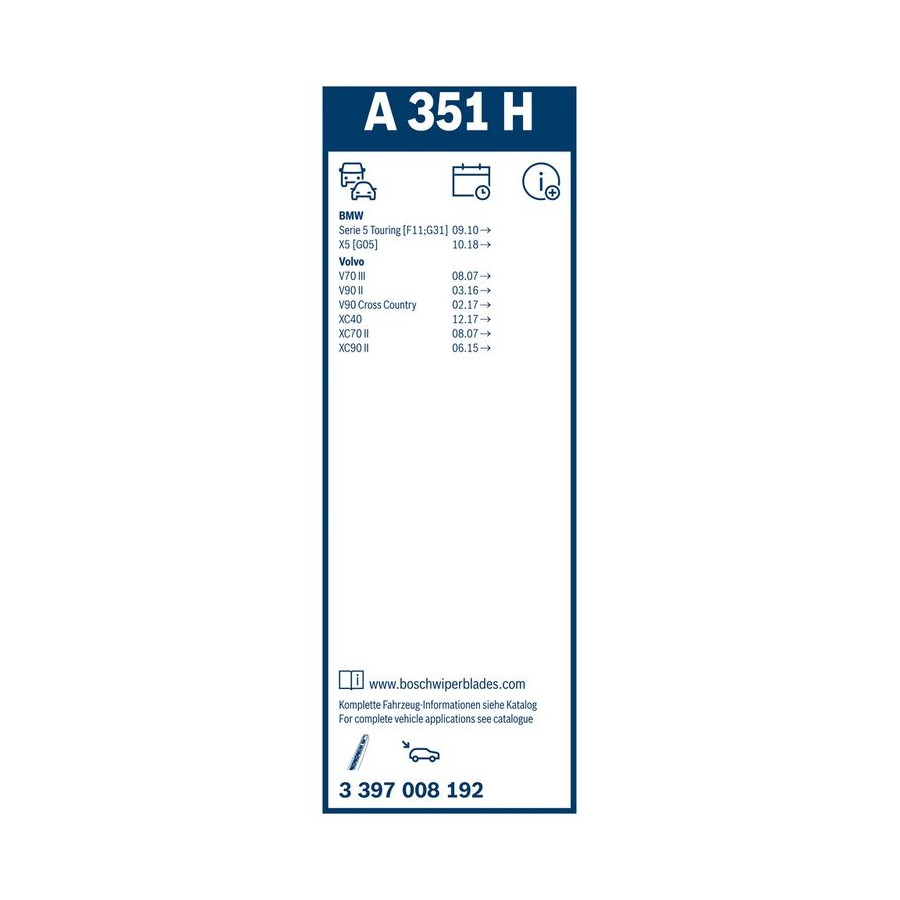 Excelente alternativa a la escobilla limpiaparabrisas original para un Volvo V90 de 2018. La escobilla tiene las mismas dimensiones que la original.