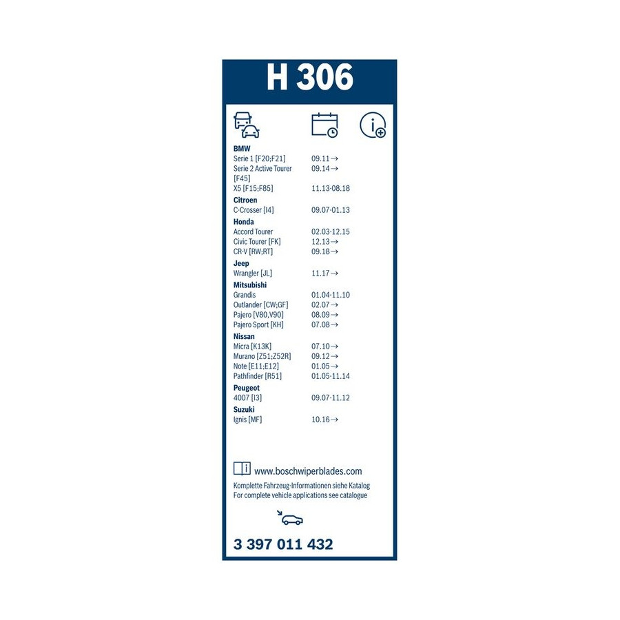 Escobilla limpiaparabrisas trasera Bosch H306 - Longitud: 300 mm - escobilla limpiaparabrisas trasera