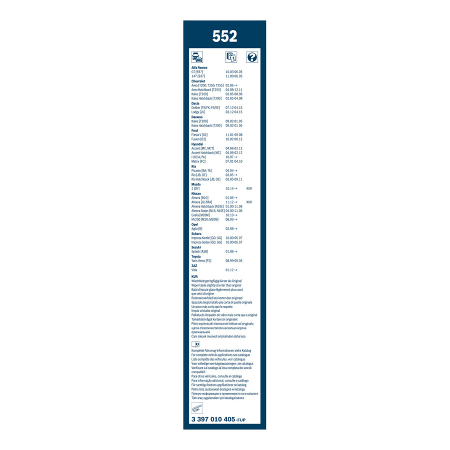 Limpiaparabrisas Bosch Twin 552 - Longitud: 550/400 mm - juego de escobillas limpiaparabrisas para