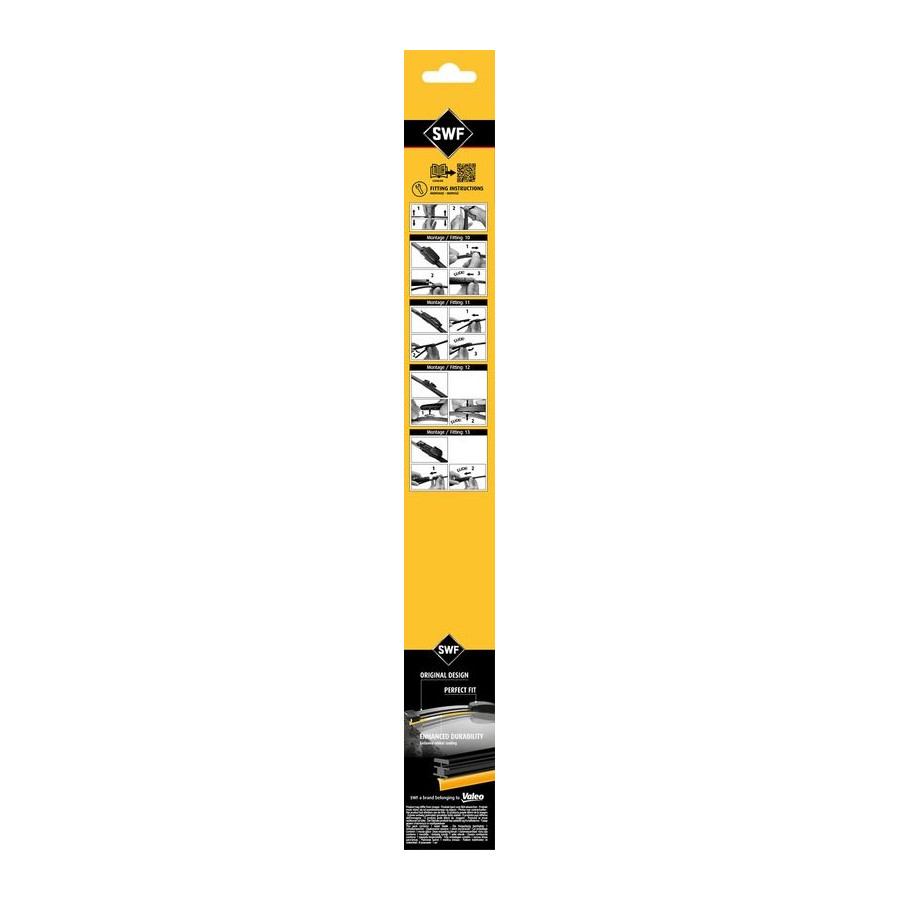 Visostar SWF fabricado por VALEO. SWF utiliza tecnología Duotec, que combina dos tipos complementarios de goma: sintética y natural. Esta tecnología garantiza una mayor duración de la escobilla, un funcionamiento más silencioso y mayor calidad - 1 año de garantía completa - buena calidad de limpieza - silencioso - Duradero - Resistente al ozono y UV